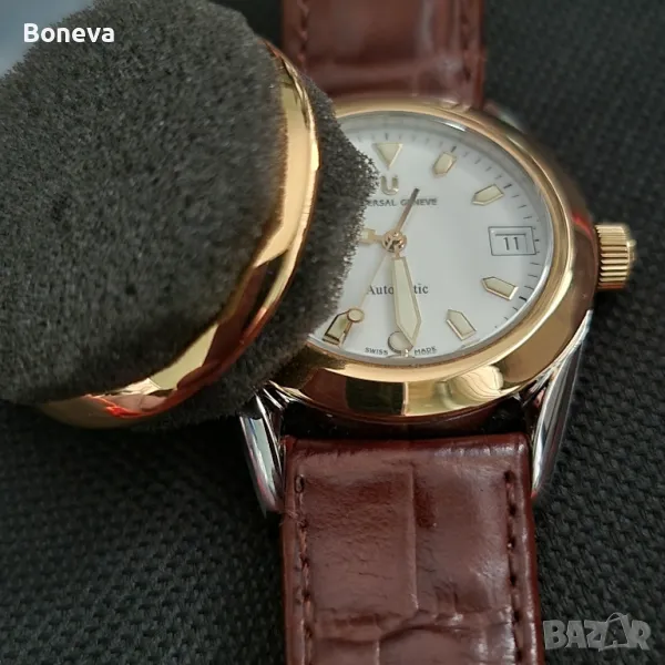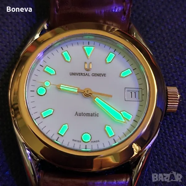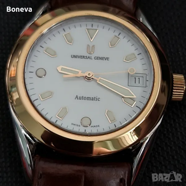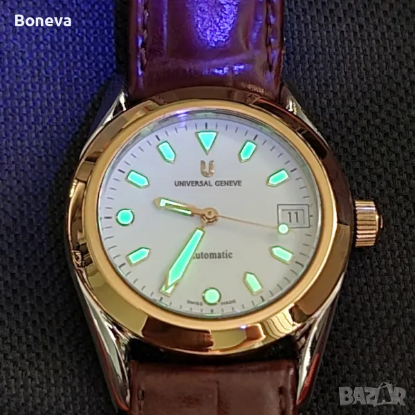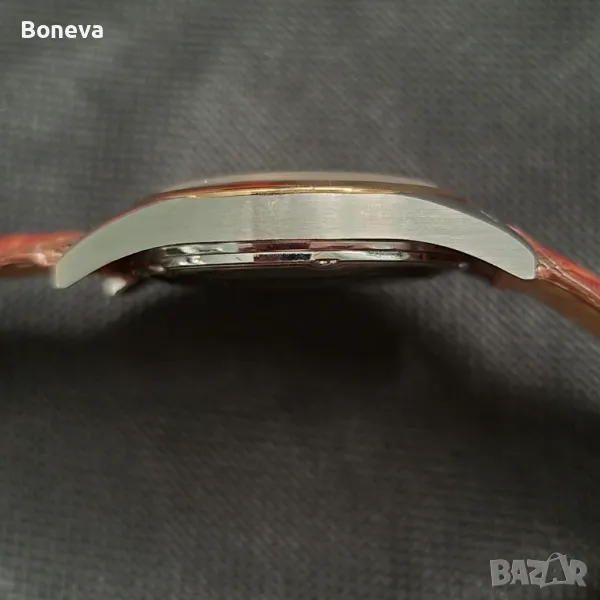 Часовниците този и още един от същата марка съпруга ми ги е купил нови от склад в Испания, липсва ли са безелите или там каквото се казва около стъклото защото навярно са били продадени като резервна част тъй като са от 18 карата злато. Мъжа ми е поръчал да изработят според неговото виждане нови безели в монетен двор именно тях виждате на снимките... Установих че е много трудно да се направят хубави снимки на часовниците от които да е видно красотата им..
