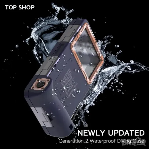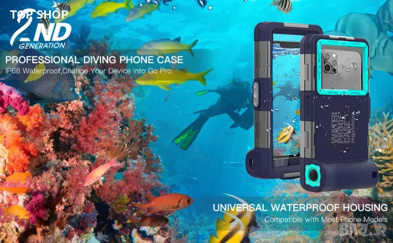 Работа с един бутон. Проектирахме водоустойчив корпус с голям "затвор", улавяйте всичките си подводни приключения, като натиснете директно "затвора". Поставете телефона на правилното място, затворете капака и затворете катарамата. Калъфът за гмуркане от второ поколение използва композитни метални крепежни елементи и сгъваема скоба, които са по-издръжливи и по-стегнати.