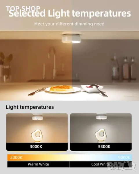 Лесен за инсталиране и препозициониране - Всяка безжична шайба лампа се предлага с магнит, просто залепете лампите към продуктите от желязо, идва и със залепващ монтажен диск, може да се монтира за 3 секунди, където пожелаете. Премахнете лесно магнитната светлина, когато имате нужда от светлина в тъмнината, и я позиционирайте