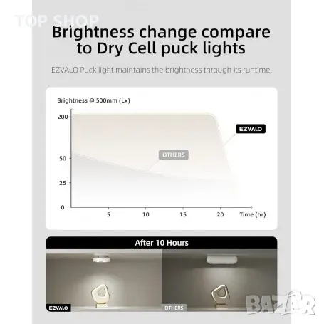 Акумулаторна и енергоспестяваща - С Вградена литиева батерия от 2000 mAh вместо сменени AAA батерии, акумулаторната шайба издържа 19 часа при пълна яркост. Зареждайте 3 шайби едновременно с USB кабела 3 в 1, супер удобно и спестявайки до 80 AA сухи батерии годишно за всяка лампа