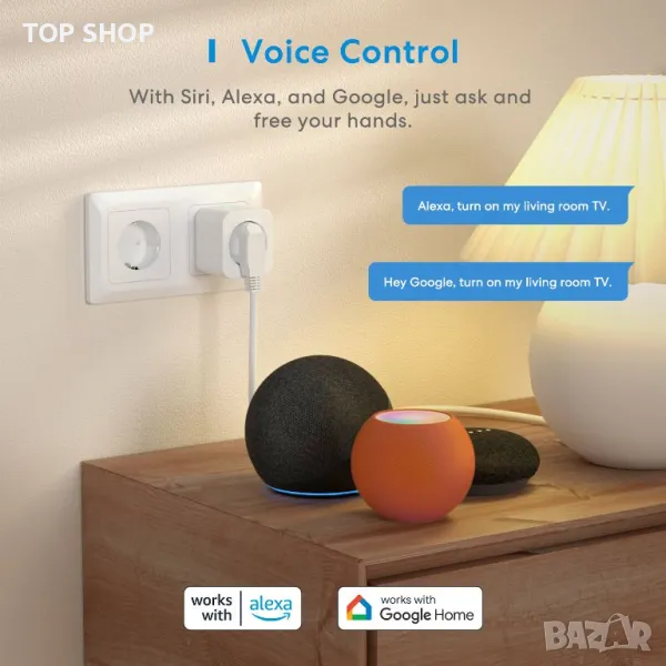 Умният контакт Meross 16A EU е интелигентно устройство, което ви позволява да контролирате електрическите уреди в дома си от разстояние чрез Wi-Fi връзка. Той е съвместим с гласовите асистенти Alexa, Google Home и SmartThings, което означава, че можете да управлявате устройствата си с гласови команди.