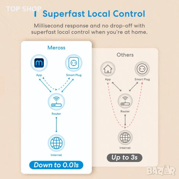 Инсталирането на умния контакт е лесно и не изисква специални инструменти. След като свържете контакта с домашната си Wi-Fi мрежа, можете да го управлявате през приложението Meross, което е налично за iOS и Android устройства. Приложението ви позволява да задавате графици за автоматично включване и изключване на уредите, както и да създавате персонализирани сцени за управление на множество устройства едновременно.