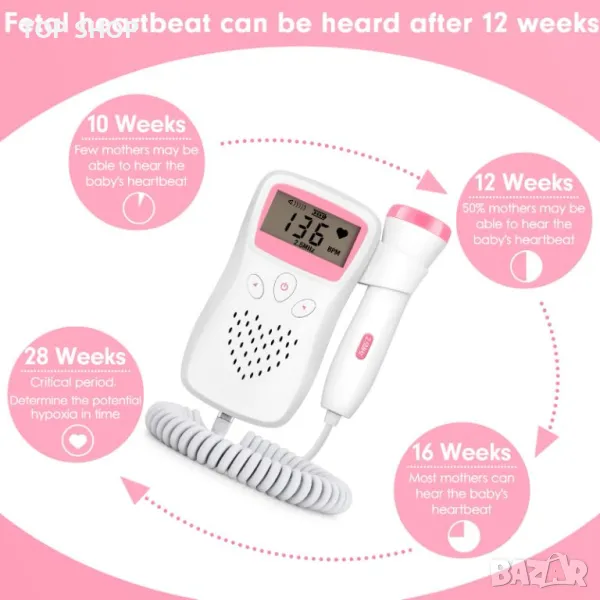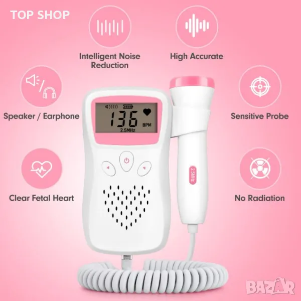 Този фетален доплер е с висока чувствителност, 0 радиация, удобно измерване. По-ясни показания на LCD дисплея с голям екран.