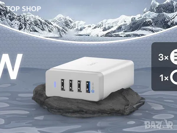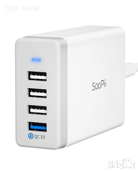 SooPii 40W USB зарядно за зареждане 4-портова USB зарядна станция с един порт QC 3.0 за множество