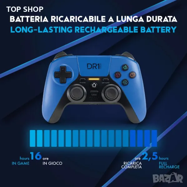 БЕЗЖИЧЕН ДЖОЙСТИК КОНТРОЛЕР SHOCKPAD II ЗА PS4/PS4 PRO ( PS5 ) PC/WIN IOS СИН БЯЛ