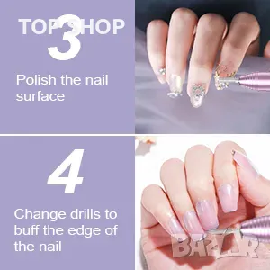 Професионална шлифовъчна машина за нокти: Машината за шлайфане на нокти е богата на аксесоари и има многофункционални функции, които могат лесно да полират, гравират, изрязват, премахват гел лак и кожички от акрилни и естествени нокти. (6 свредла, 6 полиращи глави, 1 вал за шлифовъчна лента с 16 шлифовъчни ленти и 1 четка за прахово почистване