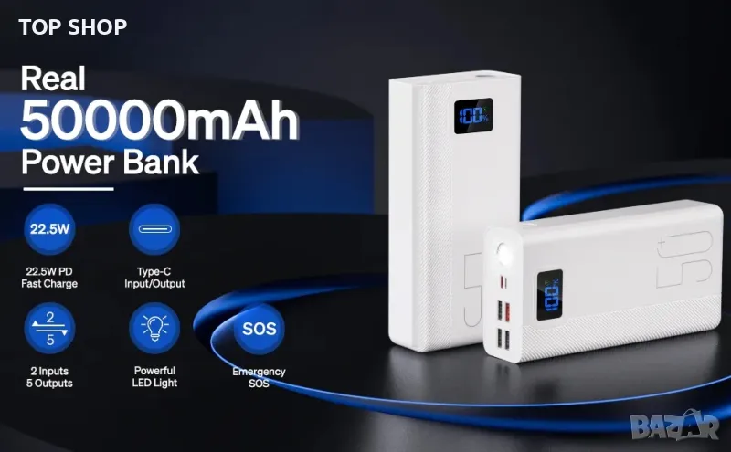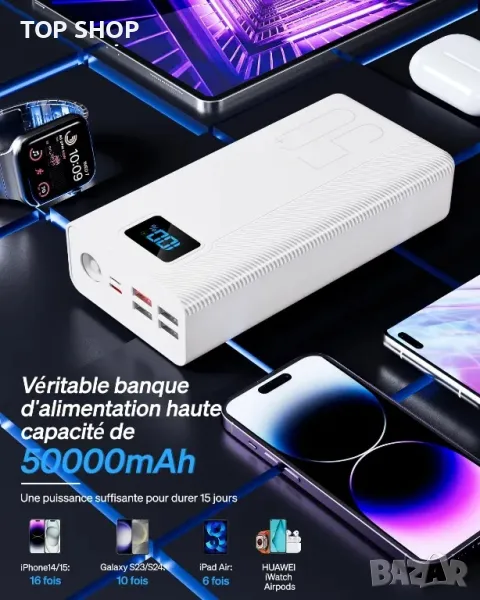 50000mAh Power Bank-Поддържа вашите устройства под напрежение през цялото време, с пълно зареждане с продължителност до 15 дни.