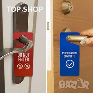 Елате със знак за предупреждение и позволено. Когато машината за озониране работи, закачете табелата „НЕ ВЛИЗАЙТЕ“ на дръжката на вратата, за да избегнете безразборно влизане на други хора. След приключване на работата, закачете знака „ПРЕЧИСТВАНЕТО ЗАВЪРШИ“, за да кажете на другите да разрешат влизането в стаята.