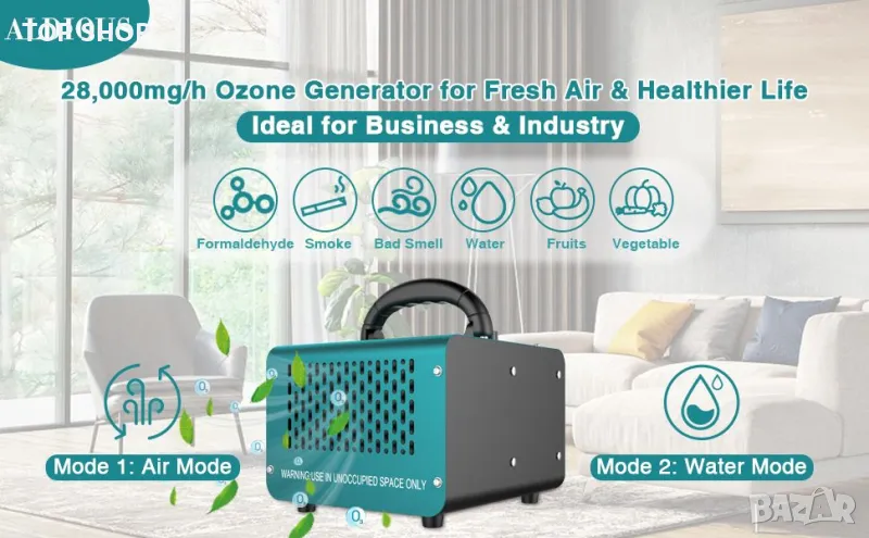 ALDIOUS Генератор на озон 28000mg/h Индустриален с голям капацитет озонатор за стаи автомобил