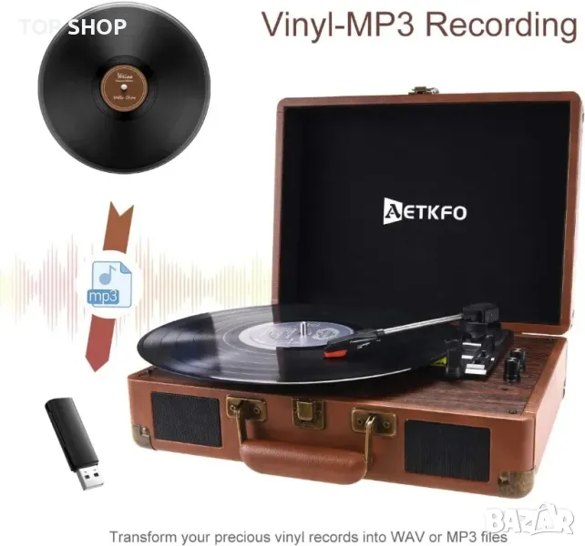 AETKFO Bluetooth 33/45/78 RPM винилов грамофон с вградени високоговорители