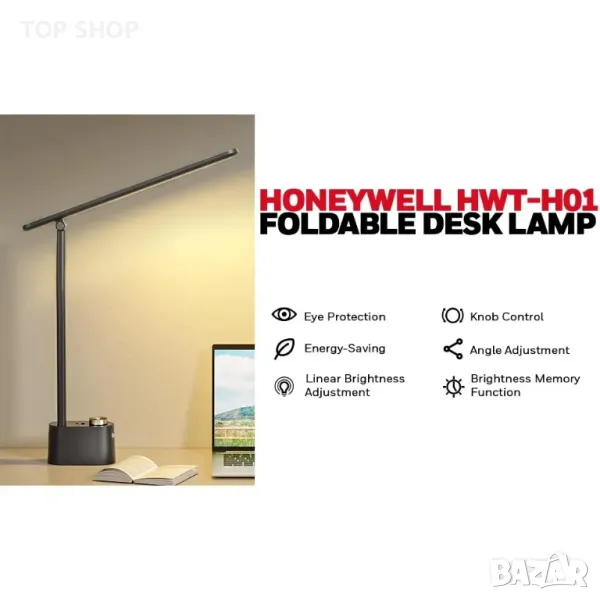 Ученическа модерна настолна лампа за бюро Honeywell с USB A+C порт за зареждане и защита за очите
