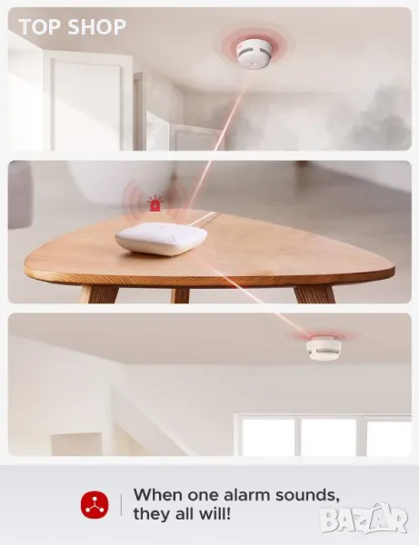 Знайте отвсякъде: Всеки път, когато бъде открит дим, ще получите насочено известие на телефона си; базовата станция и всяка аларма в системата ще прозвучат едновременно, така че всеки в дома ви да е наясно с аварийната ситуация