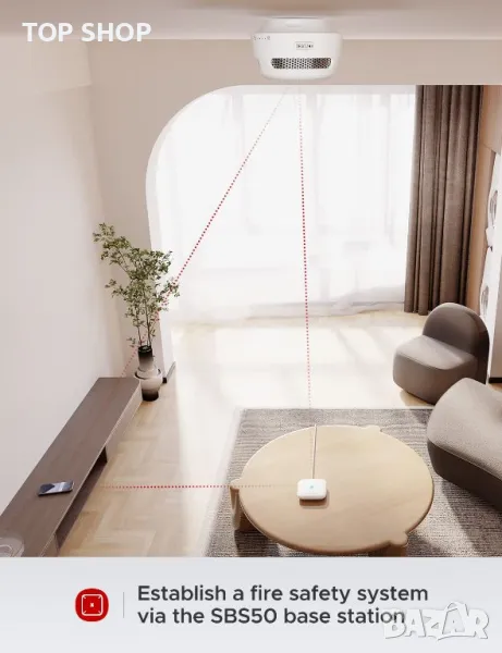 До 50 аларми, включително аларми за дим, аларми за въглероден окис и други, могат да бъдат добавени към базовата станция SBS50 за взаимосвързана система, така че ако едно устройство прозвучи, всички ще прозвучат; неговото разстояние за предаване на открито от 1640 фута (500 м) осигурява стабилна комуникация между устройствата