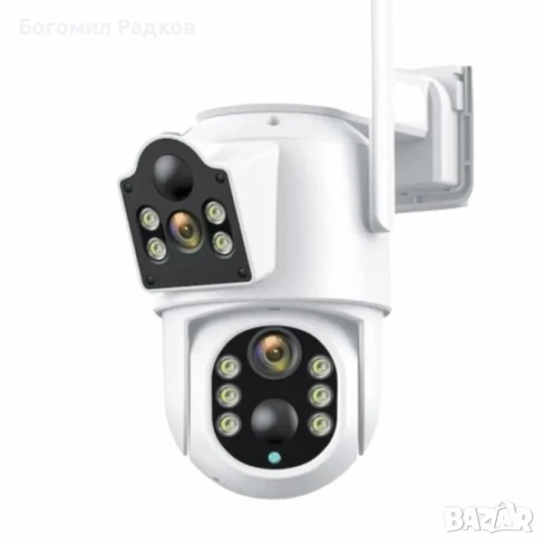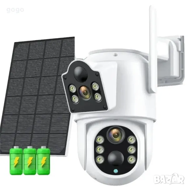 Качество на изображението: Двойни лещи (2MP + 2MP) за по-добра резолюция;Откриване на движение: Вграден PIR сензор;Нощно виждане: Цветно, с двоен светлинен източник;Комуникация: Двупосочен звук (микрофон и високоговорител);Обхват на наблюдение: Панорамен изглед с 350° завъртане и 90° наклон;Захранване: Соларен панел и вградена 7800mAh литиева батерия;Защита: Водоустойчив IP66 корпус;Свързаност: Wi-Fi, SD слот за локално съхранение;Приложение: Съвместима с iSee App;Гаранция: 12 месеца.