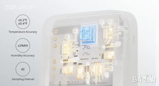 Стаен термометър SwitchBot е направен със швейцарски сензор, който дава още по-точни показания на температурата с по-бърза скорост на опресняване от само 4 секунди.