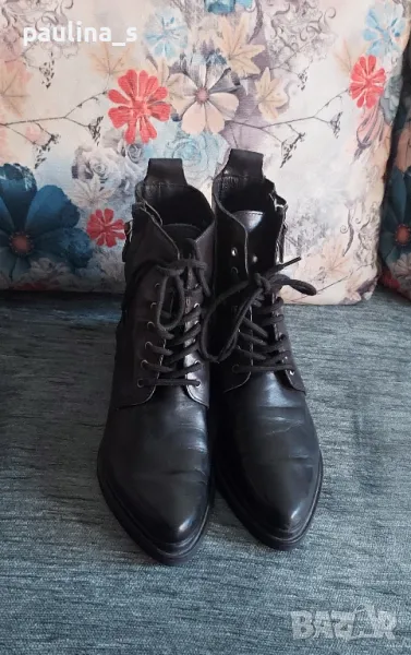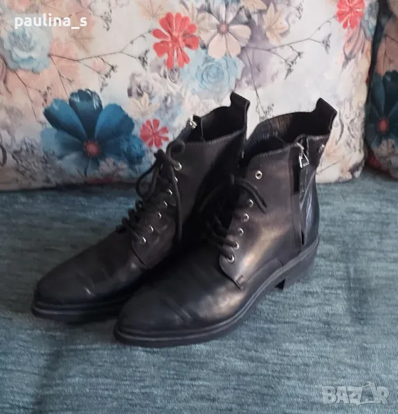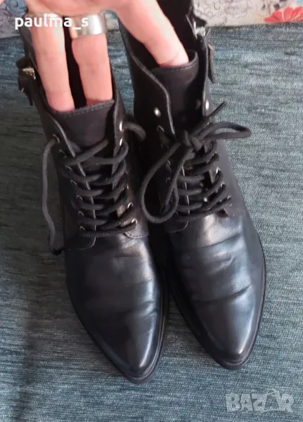 1️⃣. "Nude". Цената е крайна, без пазарлъци 70 евро. Дамски боти от естествена кожа, кожен салон, с връзки и ципове в страни. Моделът е Байкърски със заострени фортове. Перфектни. Не са носени отвън, пробвани само. Стелка 26см / Подметка 27см / Ширина на ходилото 8,5см / височина 14см.