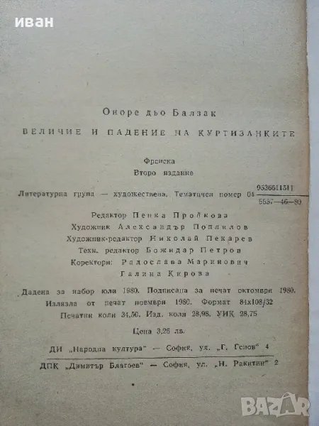 Величие и падение на куртизанките - Оноре Дьо Балзак - 1980г. → Обява 49050545