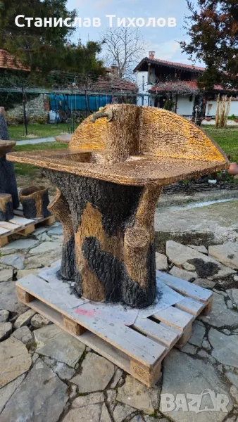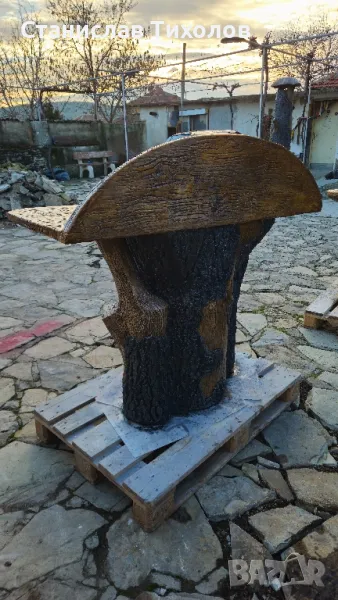 Градински декоративни изделия от щампован бетон имитиращи дърво