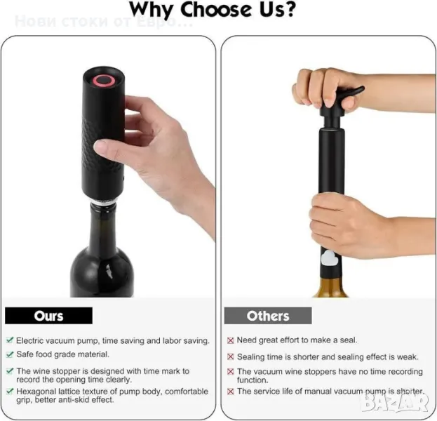 Комплект автоматична помпа за вино WIWONEY с електр помпа за вино,4 вакуумни тапи за вино тип C