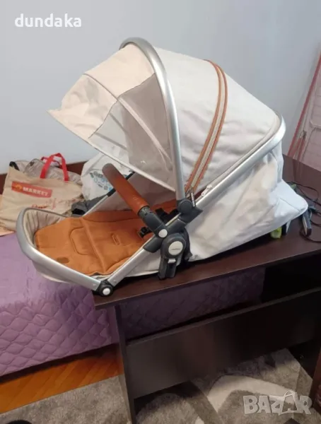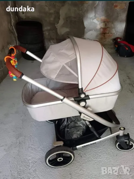 Характеристики:• Количка 2в1 - седалка и кош за новородено;• Лека алуминиева рамка;• Амортисьори на рамката и колелата;• 5-точков колан за безопасност;• Отвор на сенника за наблюдение на детето, визьор и допълнително удължаване;• Голям кош за багаж;• Отделящ се предпазен борд;• 360° ротация на предните гуми за висока маневреност;• PU материал за гумите, осигуряващ издържливост на всички терени;• Лесна за сгъване и разгъване със или без седалката;• Възможност за отделяне на четирите гуми и заключване на предните.Комплектът включва:• Седалка;• Кош за новородено;• Покривало за крачета;• Подложка за седалката;• Матраче за кошът за новородено;• Покривало за крачета за кош за новородено.Размери и тегло:• Размери на седалката в разгънато състояние: 62 х 44 х 103 см.• Размери на седалката в сгънато състояние: 105 х 62 х 90 см.• Размери на кошът на новородено: 82 х 43 х 59 см.• Тегло на количката със седалка: 12,1 кг• Тегло на кошът за новородено: 4 кг.Подходяща за деца над 0 месеца с тегло до 15 кг.Към нея има дъждобран комарник чанта поставка за чаша или шише и подарък две играчки.Много лека и лесно маневрена !