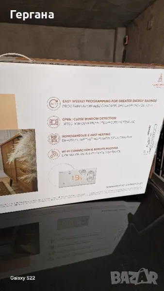 конвектора включен веднъж, без никакви забележки кутията книжка за инструкции допълнително закупени крачета за 39 лв може да се монтира на стена ,гаранция 7 години закупен от тенополис.Имам климатик и това е причината за продажбата .