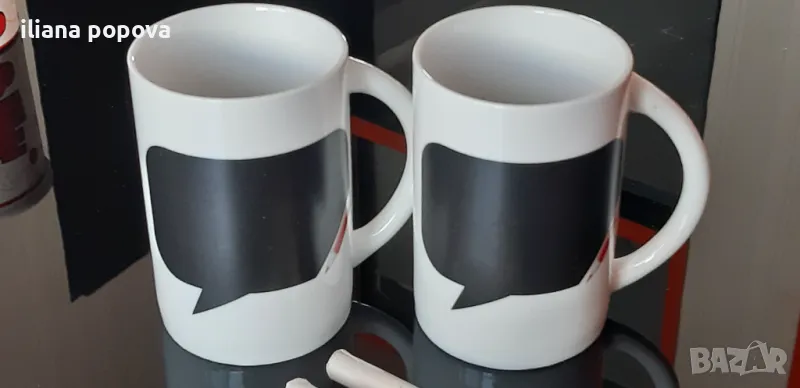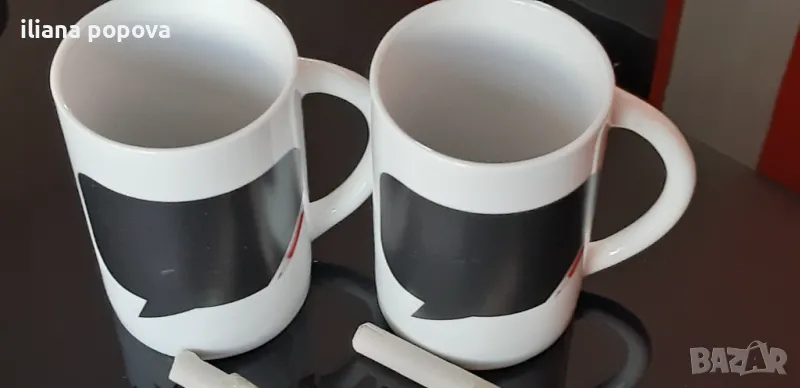 Продавам 2 чаши на който може да напишете съобщение , списък за пазар или просто едно Добро утро с чаша горещо кафе .Цената за двете чаши и двете пишешти моливчета е 10 лв.
