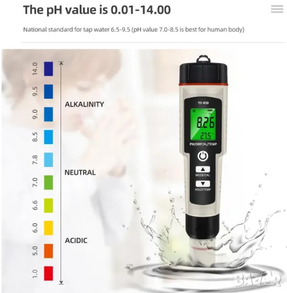 Обхват на измерване: 0.01-14.00pH