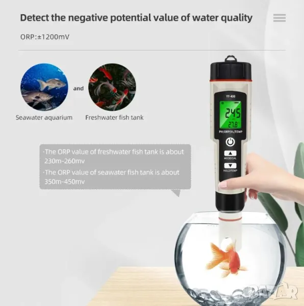 Цифров ORP Метър Многофункционален Тестер за Качество на Водата PH ORP H2 + Термометър с Компенсация