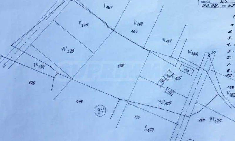 В имота има стара жилищна сграда и стопанска постройка, които са отбелязани на скицата и са с площ 72 кв.м и 62 кв.м. За съжаление и двете постройки не подлежат на ремонт.