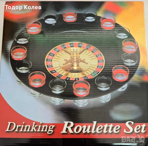 Настолна игра рулетка Drinking Roulette с 16 стъкл. чашки за шотове. → Обява 49054650