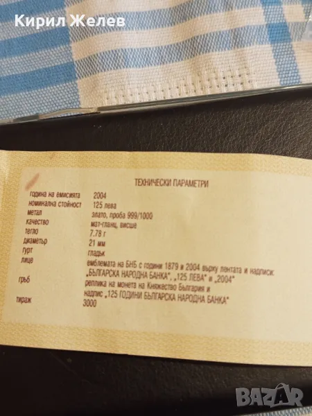 Свидетелство за автентичност Златна монета 125 години БНБ 19990 → Обява 49055593