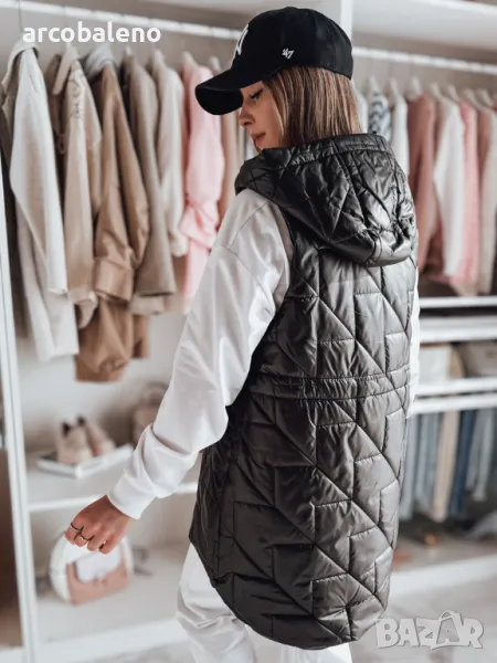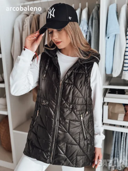 Тази стилна преходна жилетка е идеалният избор за по-студено време. Моделът се закопчава с цип, с несваляща се качулка и корекции под мишниците за по-добро прилягане. Два декоративни джоба придават чар, а изолацията осигурява комфорт при носене. Модният ватиран модел подчертава модерния стил, идеален за всеки повод.