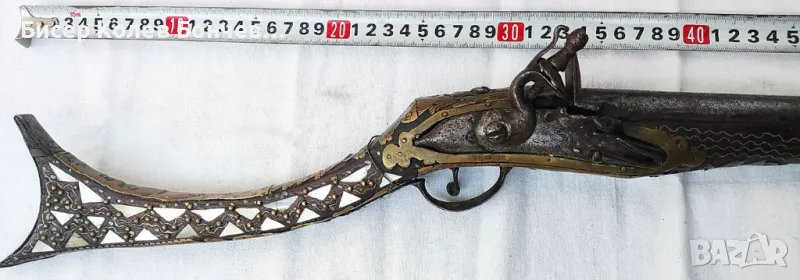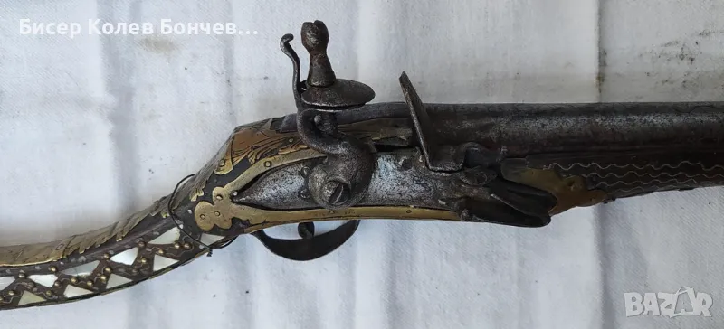 Продавам тази къса кремъклийка-карамфилка (кариофили) с работещ механизъм, седефена украса сребърни набивки и спускова скоба. Цената подлежи на коментар.
