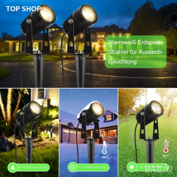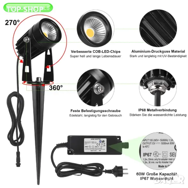 Висококачествен LED прожектор със заземяване: градинският прожектор е изработен от лят алуминий и е издръжлив и устойчив на ръжда; с усъвършенстван COB LED източник на светлина, 3 W/360 lm на лампа, общо 4320 lm, супер ярък и равномерен лъч, дълъг обхват и обхват на излъчване, 3000 K, тази градинска лампа ви предлага по-топла и по-мека атмосфера за вашата морава, градина, дърво, ограда и път.