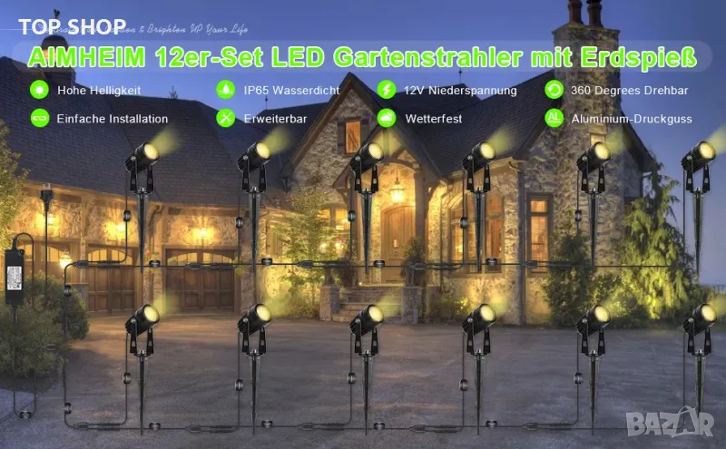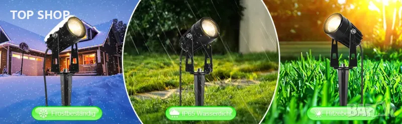 IP65 водоустойчив комплект от 12 LED градински прожектора: благодарение на устойчивия на атмосферни влияния корпус, градинското осветление остава защитено от дъжд, влага и прах.
