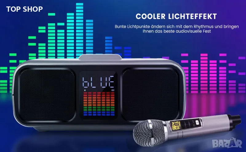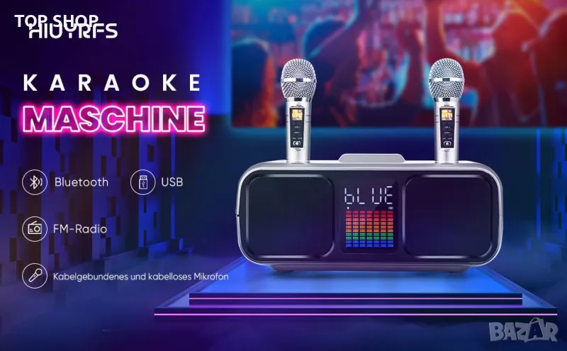 Караоке Bluetooth колонка HIUYRFS преносим комплект за деца с 2 безжични микрофона LED светлина