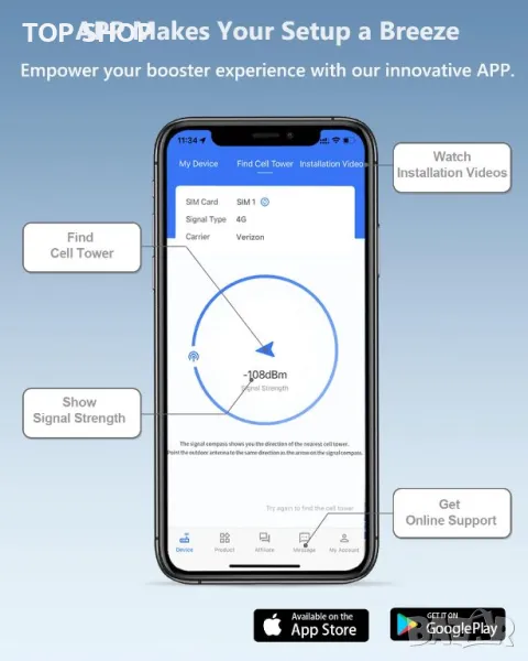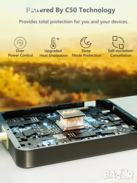 Усилвателят на клетъчния сигнал с максимално усилване от 50 db може мощно да усили сигнала за по-малко прекратени повиквания, по-добро качество на гласа, по-високи скорости на данни и подобрено аудио и видео поточно предаване по пътя и докато сте паркирани, дори в отдалечени райони .
