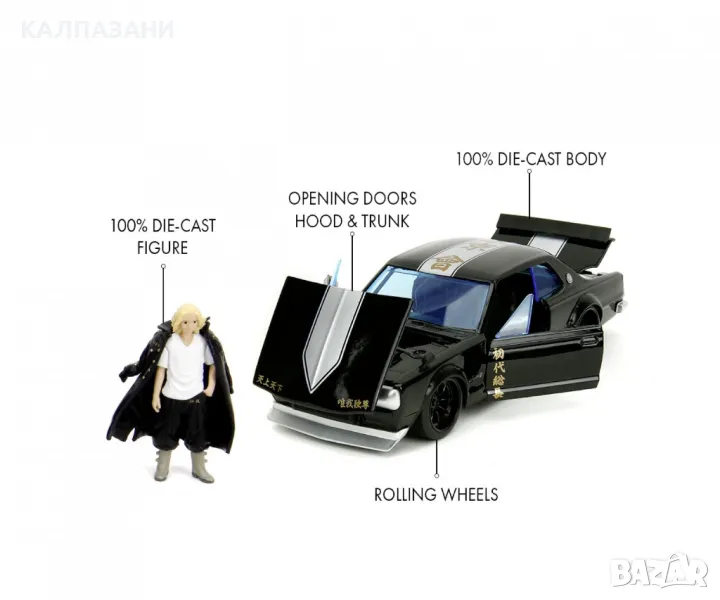 • Дует за феновете на Япония - официално лицензирани стоки за Tokyo Revengers: Колата-играчка Nissan и аниме фигурката обогатяват вашата колекция с две японски суперзвезди.