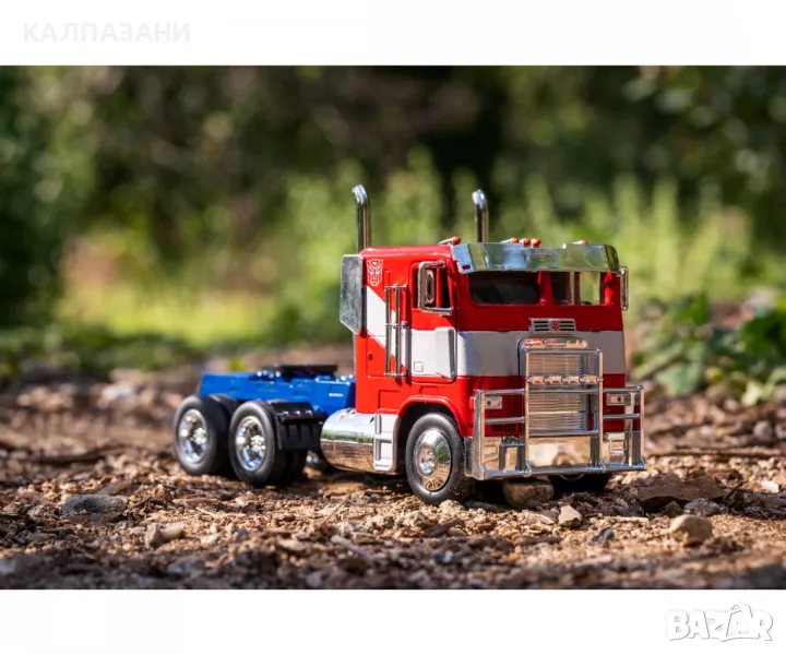 • Висококачествен метален модел - точно както познавате популярния герой на Трансформърс Оптимус Прайм от филмовия екран - като голям камион с платформа в поразителните цветове червено и синьо!