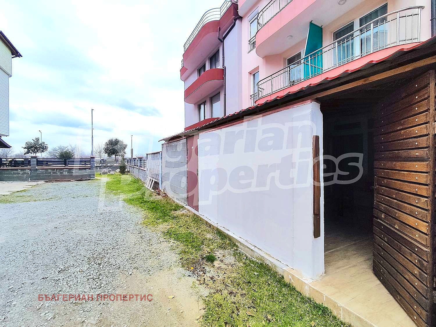 Сградата е ново строителство и разполага с Акт 16. Обектът е със самостоятелни партиди за ток и вода и предлага собствен вход, осигурявайки ви напълно независимо и комфортно жилище. Имотът е разположен на първи етаж с площ 55.58 м2 (чиста площ 48.8 м2 плюс общи части 6.78 м2). Състои се от дневна с кухненски бокс, спалня, баня с тоалетна и малък двор. Продава се напълно обзаведен.