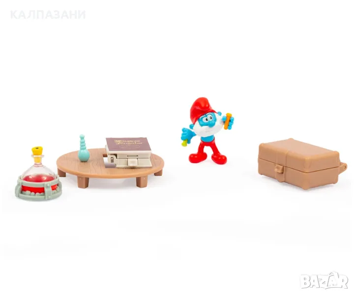 Смърфовете се завръщат с нова визия и нови приключения! Подправете играта на смърфовете с тези уникални комплекти за игра. Работилница за готвене на смърфове: включва 5.5 см фигура на готвач, пейка и аксесоари за готвене. Магическата работилница на Papa Smurf: включва 5.5 см фигурка на Papa Smurf. Отворете книгата със заклинанията с магическата пръчка! Всеки комплект се продава отделно. За деца от 3 години.