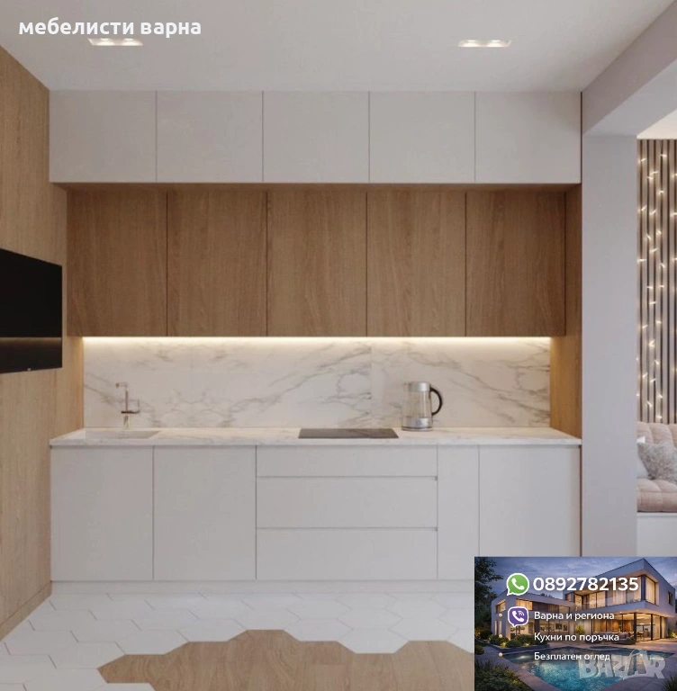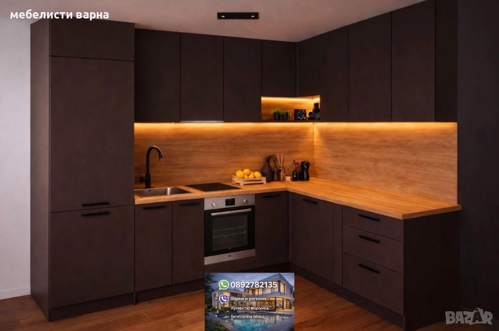 Проектиране, изработка и монтаж на кухни и мебели за дома и офиса. Индивидуални размери по желание на всеки клиент.