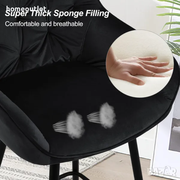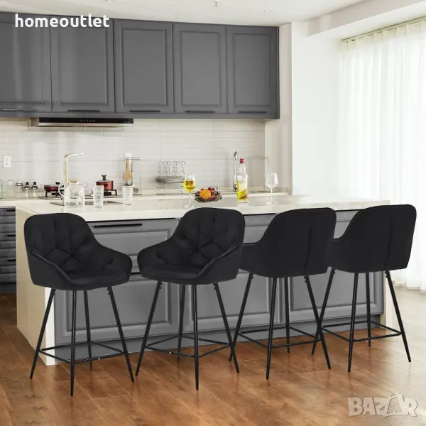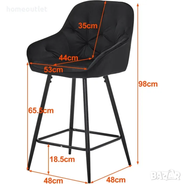 Интересен елемент от представения бар стол е металната рамка, поставена между четирите крака, върху която можете свободно да поставите краката си, докато седите