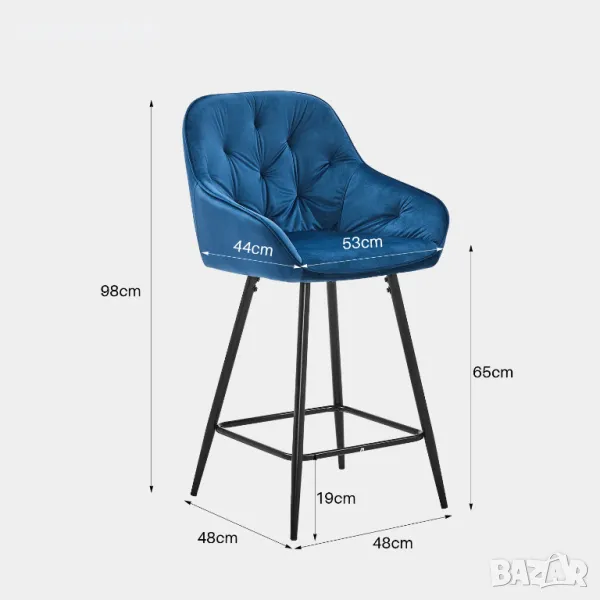 Интересен елемент от представения бар стол е металната рамка, поставена между четирите крака, върху която можете свободно да поставите краката си, докато седите