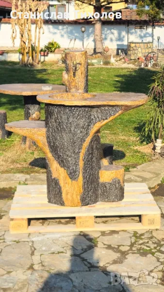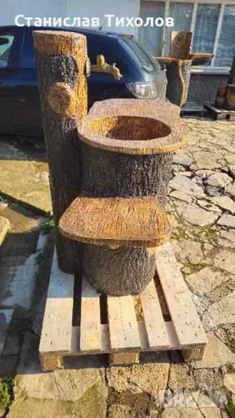 Градински декоративни изделия от щампован бетон имитиращи дърво