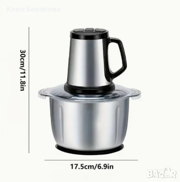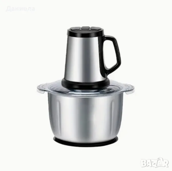 Капацитет: 5 л.;Мощност: 2000W;Силен и мощен двигател с по-нисък шум и 220V напрежение;С 3 остриета;С 3 скорости;Размери: Диаметър 17,5 см., височина 30 см.;Със защита от прегряване;С дръжка за лесно захващане;Неплъзгащ се гумен пръстен в долната част;Материал на корпуса; Неръждаема стомана;Функция: Смилане на месо, смесване, разбиване на яйца, смилане, нарязване;Характеристика: Мотор от чиста мед, променлива скорост, дизайн с накланяща се глава, автоматичен;Аксесоари: Купа за смесване, острие за кълцане/смесване, заключващ се капак.Гаранция: 12 месеца.