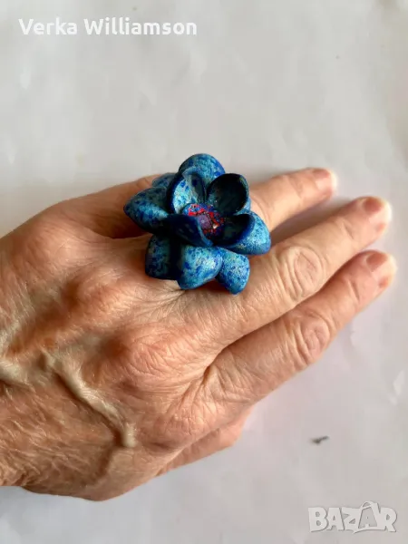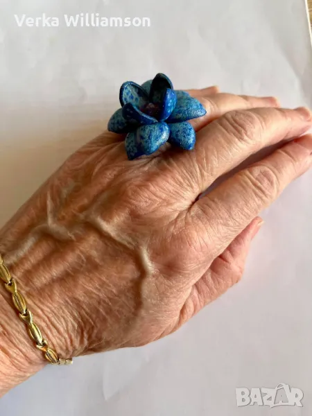 Регулираща се халка на пръстена. Диаметър на медальона: 6 см. Синя