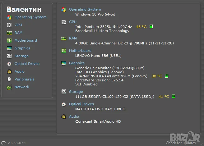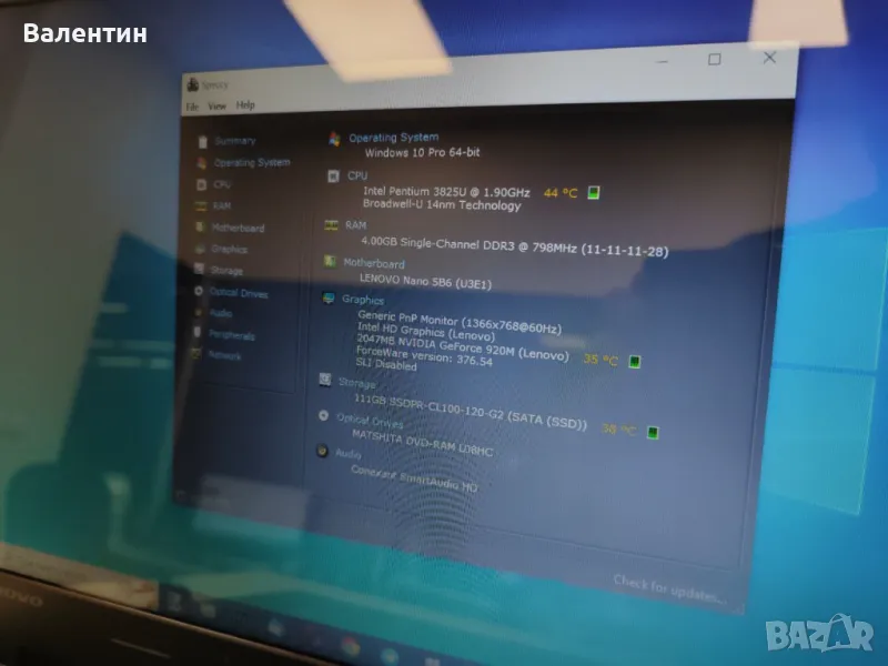 Параметрите на лаптопа са показани на последната снимка.