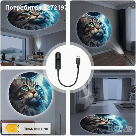 USB Захранвана LED Проекционна Светлина-Котка