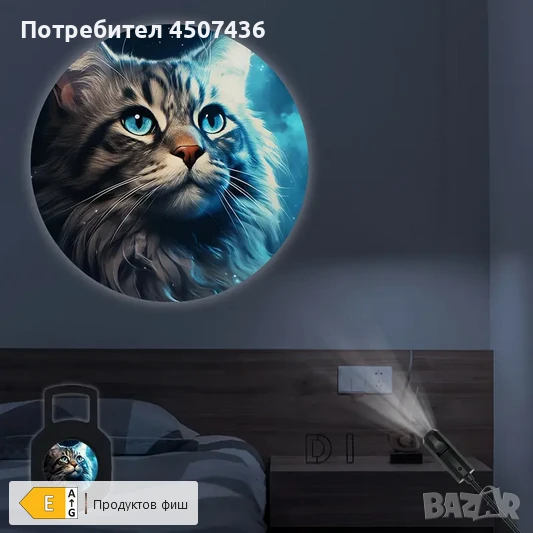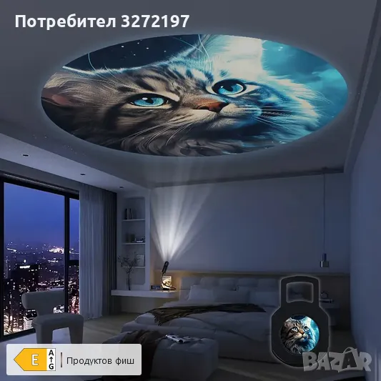 КоткаПроекционна Светлина - Лесен Монтаж, Въртяща се на 360° за Вътрешна Атмосфера, Перфектна за Празнична